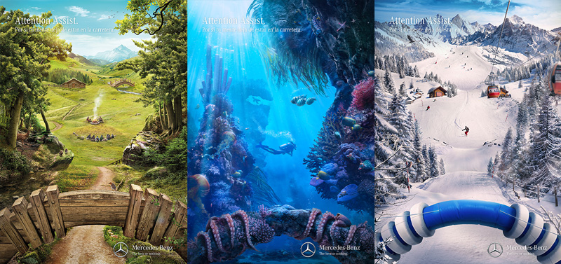 En la industria publicitaria y editorial, el matte painting es una herramienta poderosa para crear imágenes impactantes que transmitan un mensaje visual claro y atractivo. Es común en campañas que buscan representar ideas con impacto, llevando los principios del matte painting al extremo con aplicaciones que no buscan tanto el realismo sino un resultado espectacular. Nuevamente, esta técnica ahorra tiempo y dinero, evitando la necesidad de trasladar un equipo de filmación o fotografía a lugares lejanos o utilizar técnicas más complejas para lograr resultados parecidos.