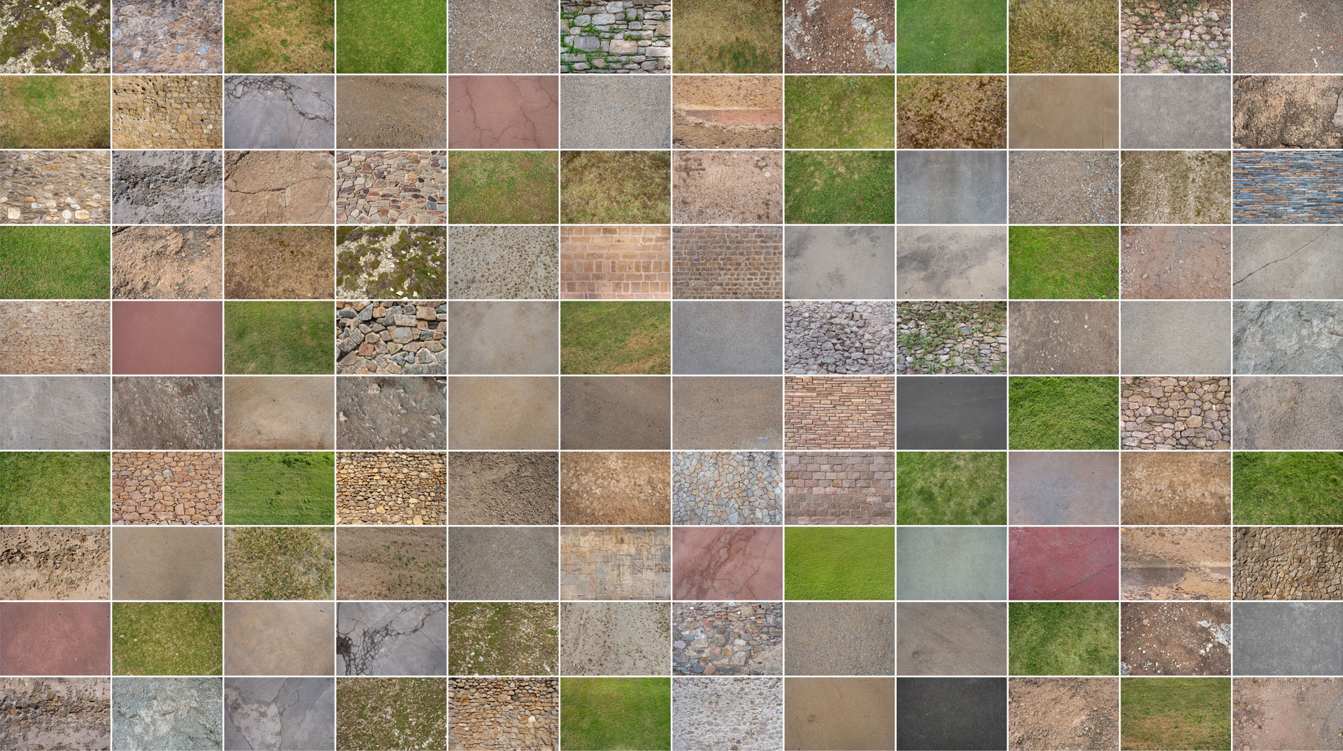 Consigue esta colección de texturas de hierba, suelo, pavimento y pared de piedra.